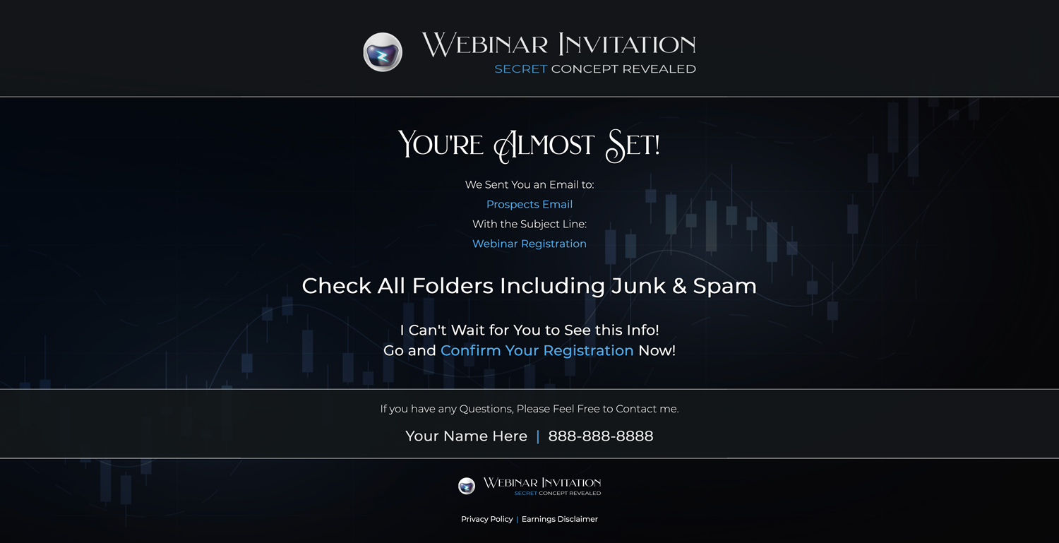This campaign of follow up emails are all personalized to each individual prospect and have links back to your presentation page in your funnel so when they do decide to signup, you get credit for the referral!